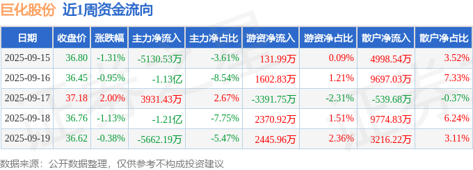 资金流向数据方面,本周巨化股份主力资金合计净流出3.03亿元,游资资金合计净流入3159.95万元,散户资金合计净流入2.71亿元。本周资金流向一览见下表: