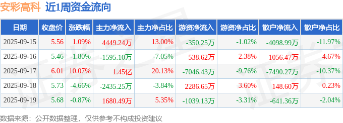 资金流向数据方面,本周安彩高科主力资金合计净流入1.66亿元,游资资金合计净流出5610.53万元,散户资金合计净流出1.1亿元。本周资金流向一览见下表: