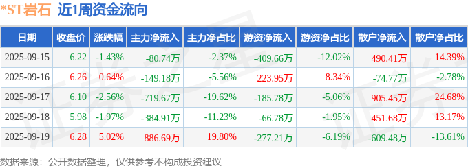 沪深股通持股方面,截止2025年9月19日收盘,*ST岩石沪股通持股数为204.17万股,占流通股比为61.0%。