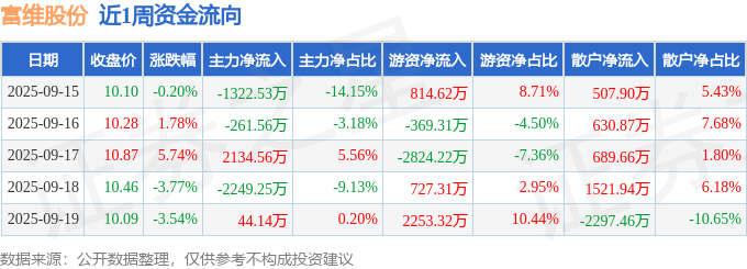 资金流向数据方面,本周富维股份主力资金合计净流出1654.63万元,游资资金合计净流入601.73万元,散户资金合计净流入1052.9万元。本周资金流向一览见下表: