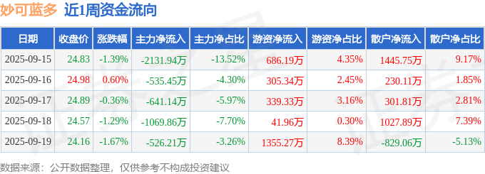 资金流向数据方面,本周妙可蓝多主力资金合计净流出4904.61万元,游资资金合计净流入2728.09万元,散户资金合计净流入2176.51万元。本周资金流向一览见下表:
