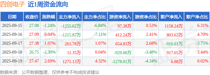 资金流向数据方面,本周四创电子主力资金合计净流出927.23万元,游资资金合计净流出1042.55万元,散户资金合计净流入1969.78万元。本周资金流向一览见下表: