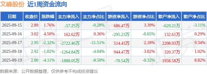资金流向数据方面,本周文峰股份主力资金合计净流出5769.98万元,游资资金合计净流入1779.6万元,散户资金合计净流入3990.38万元。本周资金流向一览见下表: