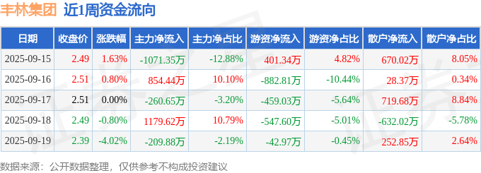 资金流向数据方面,本周丰林集团主力资金合计净流入492.17万元,游资资金合计净流出1531.08万元,散户资金合计净流入1038.91万元。本周资金流向一览见下表: