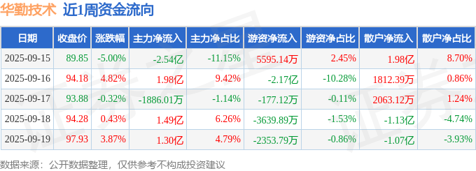 资金流向数据方面,本周华勤技术主力资金合计净流入2.05亿元,游资资金合计净流出2.22亿元,散户资金合计净流入1754.83万元。本周资金流向一览见下表:
