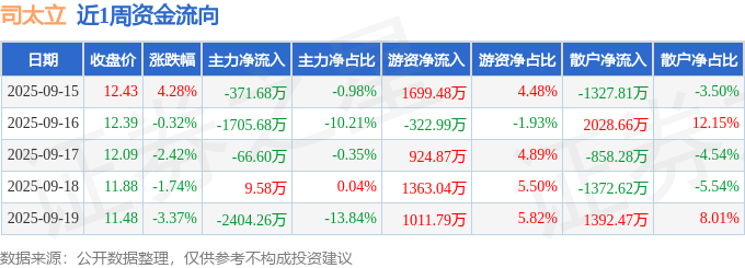 资金流向数据方面,本周司太立主力资金合计净流出4538.63万元,游资资金合计净流入4676.2万元,散户资金合计净流出137.57万元。本周资金流向一览见下表: