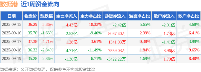 资金流向数据方面,本周数据港主力资金合计净流出2.89亿元,游资资金合计净流出1.07亿元,散户资金合计净流入3.96亿元。本周资金流向一览见下表: