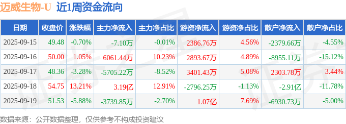 资金流向数据方面,本周迈威生物主力资金合计净流入2.85亿元,游资资金合计净流入1.66亿元,散户资金合计净流出4.5亿元。本周资金流向一览见下表: