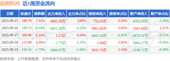 资金流向数据方面,本周拓荆科技主力资金合计净流出7724.31万元,游资资金合计净流入2.62亿元,散户资金合计净流出1.85亿元。本周资金流向一览见下表: