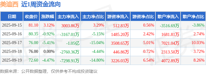 资金流向数据方面,本周美迪西主力资金合计净流出2.08亿元,游资资金合计净流入9179.56万元,散户资金合计净流入1.16亿元。本周资金流向一览见下表: