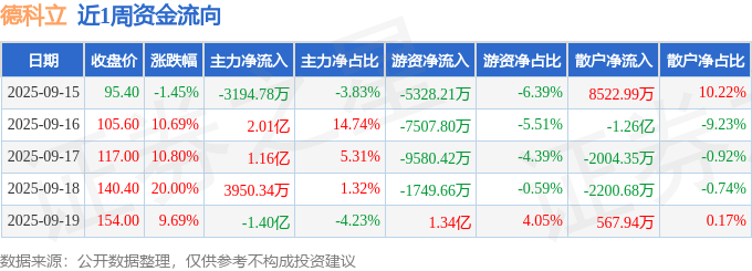 资金流向数据方面,本周德科立主力资金合计净流入1.84亿元,游资资金合计净流出1.08亿元,散户资金合计净流出7675.04万元。本周资金流向一览见下表: