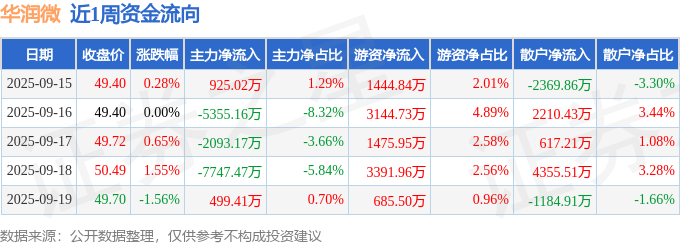 资金流向数据方面,本周华润微主力资金合计净流出1.38亿元,游资资金合计净流入1.01亿元,散户资金合计净流入3628.38万元。本周资金流向一览见下表: