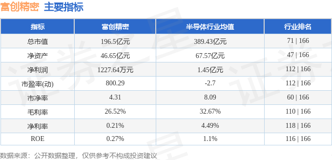 该股主要指标及行业内排名如下: