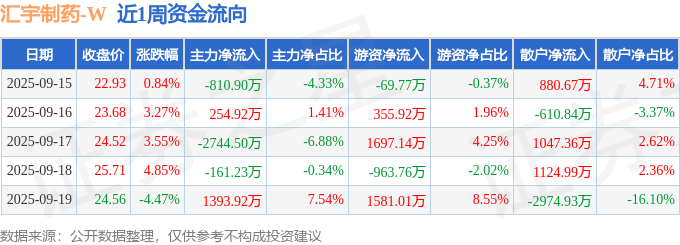 资金流向数据方面,本周汇宇制药主力资金合计净流出2067.79万元,游资资金合计净流入2600.54万元,散户资金合计净流出532.75万元。本周资金流向一览见下表:
