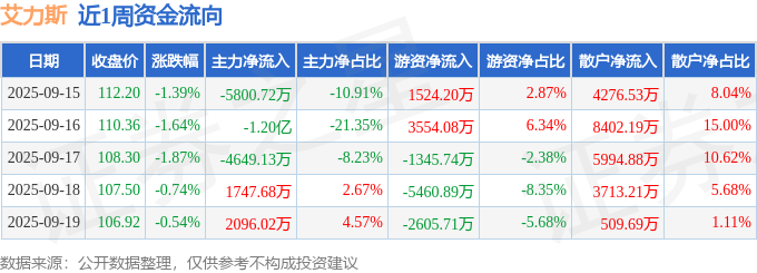 资金流向数据方面,本周艾力斯主力资金合计净流出1.86亿元,游资资金合计净流出4334.07万元,散户资金合计净流入2.29亿元。本周资金流向一览见下表: