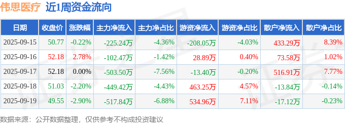 资金流向数据方面,本周伟思医疗主力资金合计净流出1798.47万元,游资资金合计净流入805.65万元,散户资金合计净流入992.82万元。本周资金流向一览见下表: