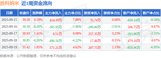 资金流向数据方面,本周胜科纳米主力资金合计净流入189.62万元,游资资金合计净流入397.5万元,散户资金合计净流出587.11万元。本周资金流向一览见下表: