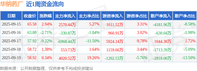 资金流向数据方面,本周华纳药厂主力资金合计净流出154.62万元,游资资金合计净流入8453.71万元,散户资金合计净流出8299.08万元。本周资金流向一览见下表: