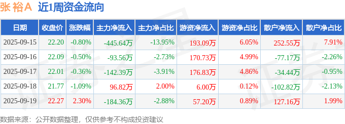 资金流向数据方面,本周张 裕A主力资金合计净流出769.14万元,游资资金合计净流入603.86万元,散户资金合计净流入165.28万元。本周资金流向一览见下表: