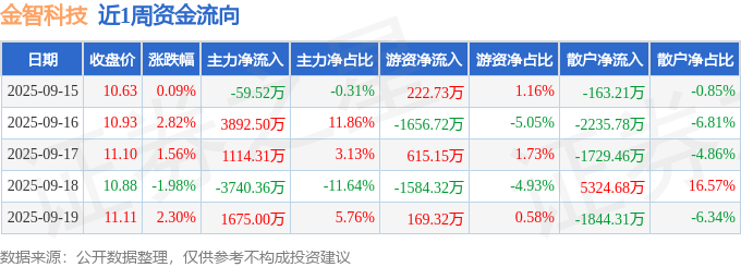 资金流向数据方面,本周金智科技主力资金合计净流入2881.93万元,游资资金合计净流出2233.85万元,散户资金合计净流出648.07万元。本周资金流向一览见下表: