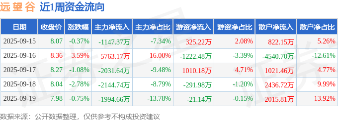 资金流向数据方面,本周远 望 谷主力资金合计净流出1555.24万元,游资资金合计净流出200.19万元,散户资金合计净流入1755.44万元。本周资金流向一览见下表:
