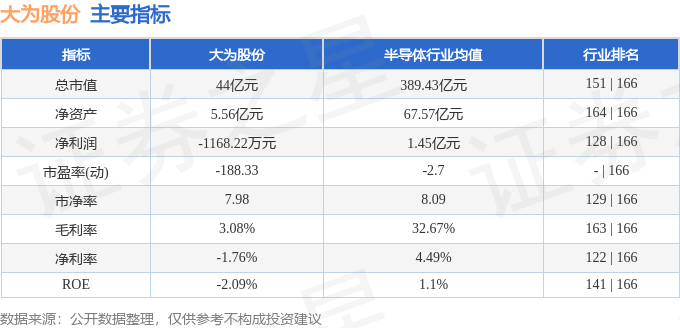大为股份(002213)主营业务:业务包括“新能源+汽车”和“半导体存储+智能终端”两大业务。 大为股份2025年中报显示,公司主营收入6.59亿元,同比上升18.46%;归母净利润-1168.22万元,同比下降14.01%;扣非净利润-668.45万元,同比上升39.66%;其中2025年第二季度,公司单季度主营收入3.22亿元,同比上升36.66%;单季度归母净利润-979.25万元,同比下降31.3%;单季度扣非净利润-427.53万元,同比上升43.94%;负债率21.54%,投资收益-307.74万元,财务费用5.08万元,毛利率3.08%。
