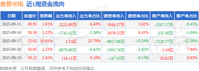 资金流向数据方面,本周奥普光电主力资金合计净流入6907.07万元,游资资金合计净流出7076.66万元,散户资金合计净流入169.6万元。本周资金流向一览见下表: