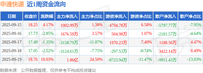 沪深股通持股方面,截止2025年9月19日收盘,申通快递深股通持股数为4153.24万股,占流通股比为278.0%。