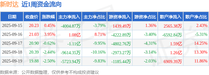 资金流向数据方面,本周新时达主力资金合计净流出1.96亿元,游资资金合计净流出1.17亿元,散户资金合计净流入3.14亿元。本周资金流向一览见下表: