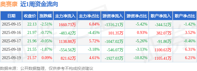 资金流向数据方面,本周奥赛康主力资金合计净流入2583.25万元,游资资金合计净流出4734.99万元,散户资金合计净流入2151.74万元。本周资金流向一览见下表:
