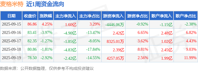 资金流向数据方面,本周麦格米特主力资金合计净流出12.4亿元,游资资金合计净流入5.62亿元,散户资金合计净流入6.78亿元。本周资金流向一览见下表: