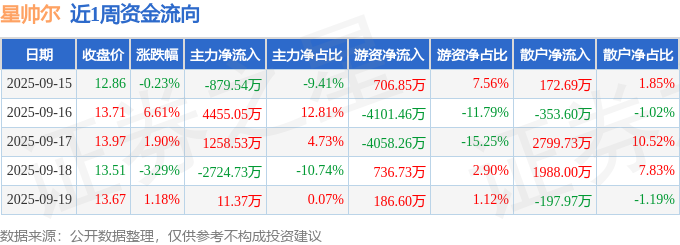 资金流向数据方面,本周星帅尔主力资金合计净流入2120.67万元,游资资金合计净流出6529.54万元,散户资金合计净流入4408.86万元。本周资金流向一览见下表: