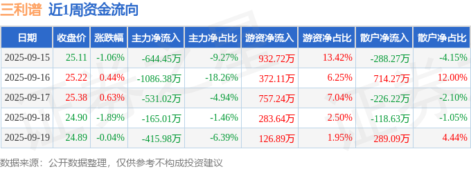 沪深股通持股方面,截止2025年9月19日收盘,三利谱深股通持股数为143.0万股,占流通股比为96.0%。