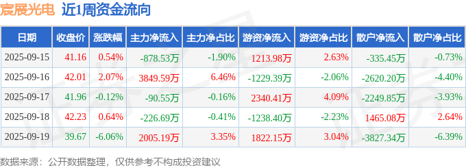 资金流向数据方面,本周宸展光电主力资金合计净流入4659.01万元,游资资金合计净流入2908.75万元,散户资金合计净流出7567.76万元。本周资金流向一览见下表: