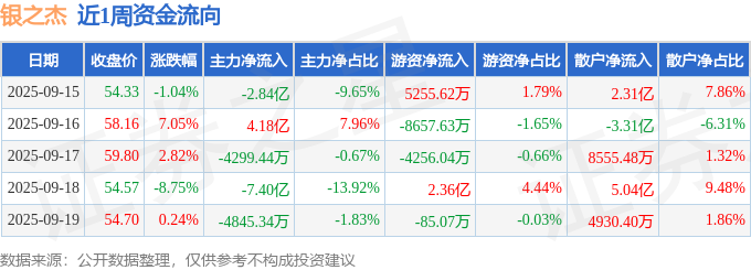 资金流向数据方面,本周银之杰主力资金合计净流出6.98亿元,游资资金合计净流入1.58亿元,散户资金合计净流入5.39亿元。本周资金流向一览见下表: