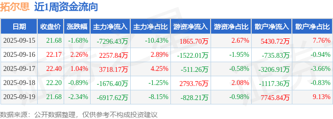 资金流向数据方面,本周拓尔思主力资金合计净流出9914.43万元,游资资金合计净流入1797.97万元,散户资金合计净流入8116.46万元。本周资金流向一览见下表: