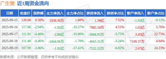 资金流向数据方面,本周广生堂主力资金合计净流出6.52亿元,游资资金合计净流入5927.47万元,散户资金合计净流入5.93亿元。本周资金流向一览见下表: