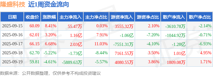 资金流向数据方面,本周隆盛科技主力资金合计净流入8786.56万元,游资资金合计净流出3314.5万元,散户资金合计净流出5472.05万元。本周资金流向一览见下表: