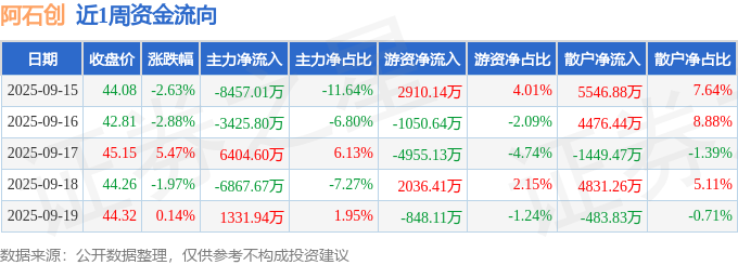 资金流向数据方面,本周阿石创主力资金合计净流出1.1亿元,游资资金合计净流出1907.33万元,散户资金合计净流入1.29亿元。本周资金流向一览见下表: