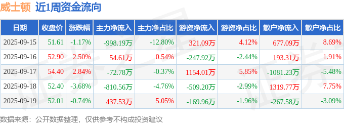 资金流向数据方面,本周威士顿主力资金合计净流出1389.39万元,游资资金合计净流入548.03万元,散户资金合计净流入841.37万元。本周资金流向一览见下表:
