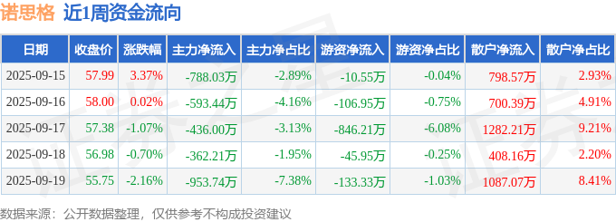 资金流向数据方面,本周诺思格主力资金合计净流出3133.41万元,游资资金合计净流出1142.99万元,散户资金合计净流入4276.4万元。本周资金流向一览见下表: