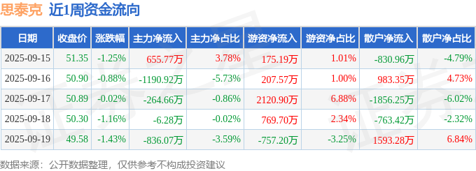 资金流向数据方面,本周思泰克主力资金合计净流出1642.17万元,游资资金合计净流入2516.16万元,散户资金合计净流出874.0万元。本周资金流向一览见下表: