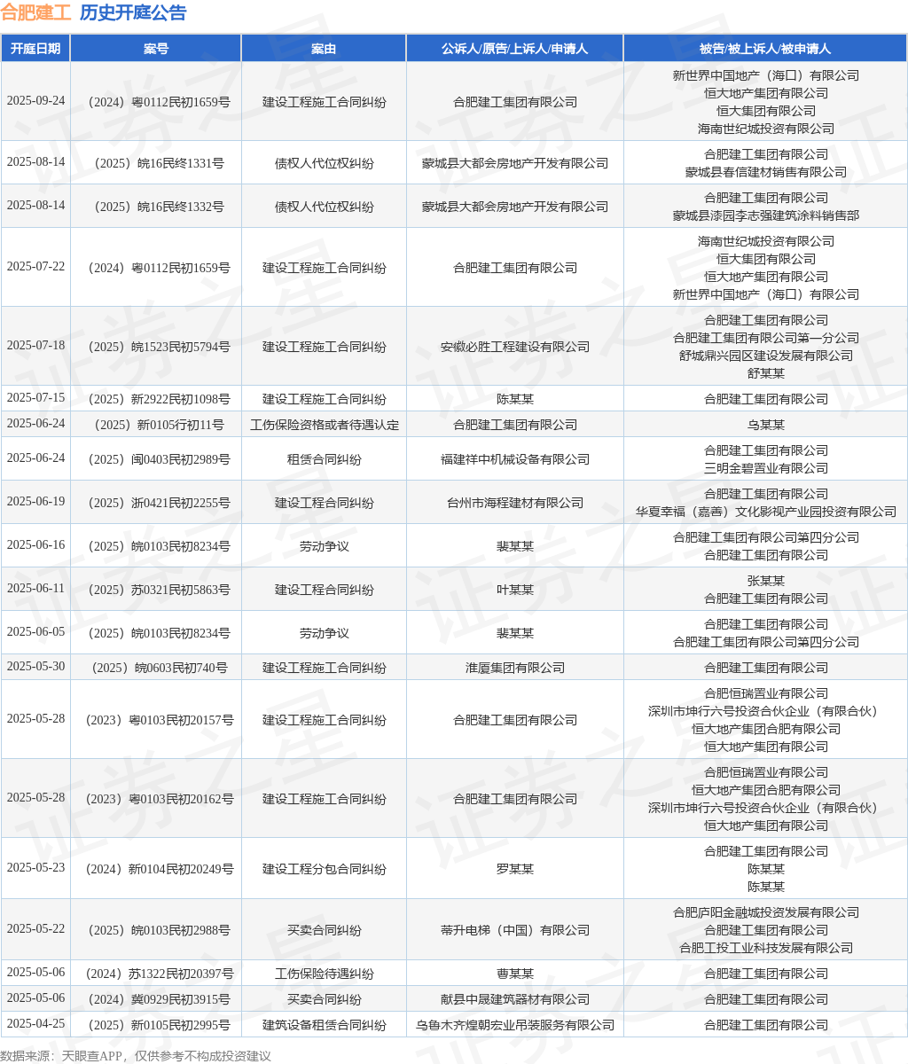 证券之星消息,根据天眼查APP显示,近日公布了一则合肥建工集团有限公司作为原告/上诉人的开庭公告,详细内容如下: