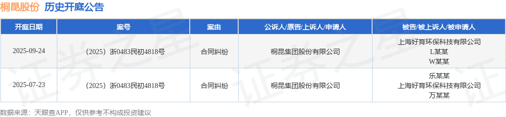 根据统计,近一年内以桐昆集团股份有限公司为当事人的历史开庭公告有2则,其中案由为“合同纠纷”的公告以2则居首。历史开庭公告如下: