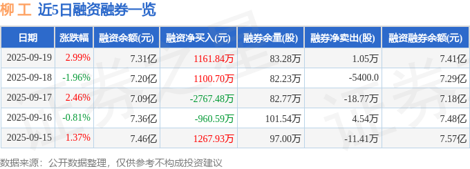 柳 工融资融券信息显示,融资方面,当日融资买入1.2亿元,融资偿还1.09亿元,融资净买入1161.84万元。融券方面,融券卖出1.15万股,融券偿还1000.0股,融券余量83.28万股,融券余额946.06万元。融资融券余额7.41亿元。