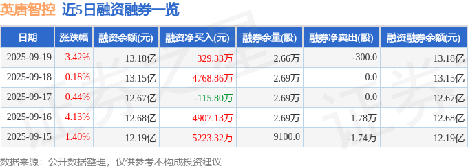 证券之星消息,截至2025年9月19日收盘,英唐智控(300131)报收于11.8元,上涨3.42%,换手率10.45%,成交量108.92万手,成交额13.02亿元。