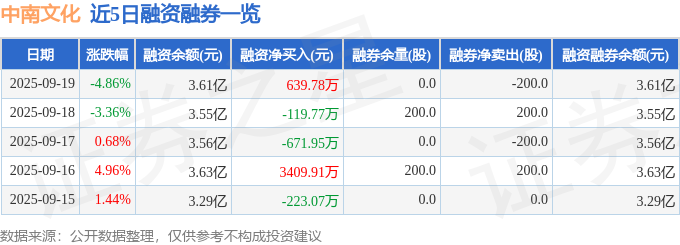 证券之星消息,截至2025年9月19日收盘,中南文化(002445)报收于2.74元,下跌4.86%,换手率6.65%,成交量157.34万手,成交额4.39亿元。