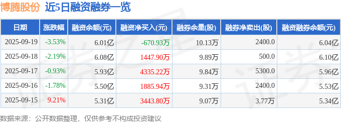 博腾股份融资融券信息显示,融资方面,当日融资买入6935.53万元,融资偿还7606.45万元,融资净偿还670.93万元。融券方面,融券卖出2400.0股,融券偿还0.0股,融券余量10.13万股,融券余额265.91万元。融资融券余额6.04亿元。