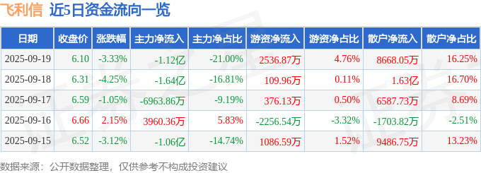 9月19日的资金流向数据方面,主力资金净流出1.12亿元,占总成交额21.0%,游资资金净流入2536.87万元,占总成交额4.76%,散户资金净流入8668.05万元,占总成交额16.25%。