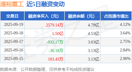 证券之星消息,9月19日,通裕重工(300185)融资买入1.68亿元,融资偿还1.42亿元,融资净买入2579.14万元,融资余额4.79亿元,近20个交易日中有12个交易日出现融资净买入。